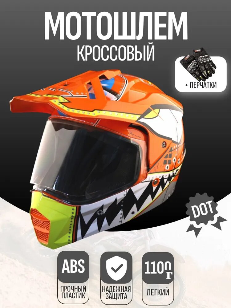 Купить Шлем кроссовый для мотоцикла, c визором прозрачный, + перчатки, оранжевый, размер XL с доставкой по всей России. Шлем кроссовый для мотоцикла, c визором прозрачный, + перчатки, оранжевый, размер XL: сравнение цен, характеристики, фото, актуальное наличие и цены.