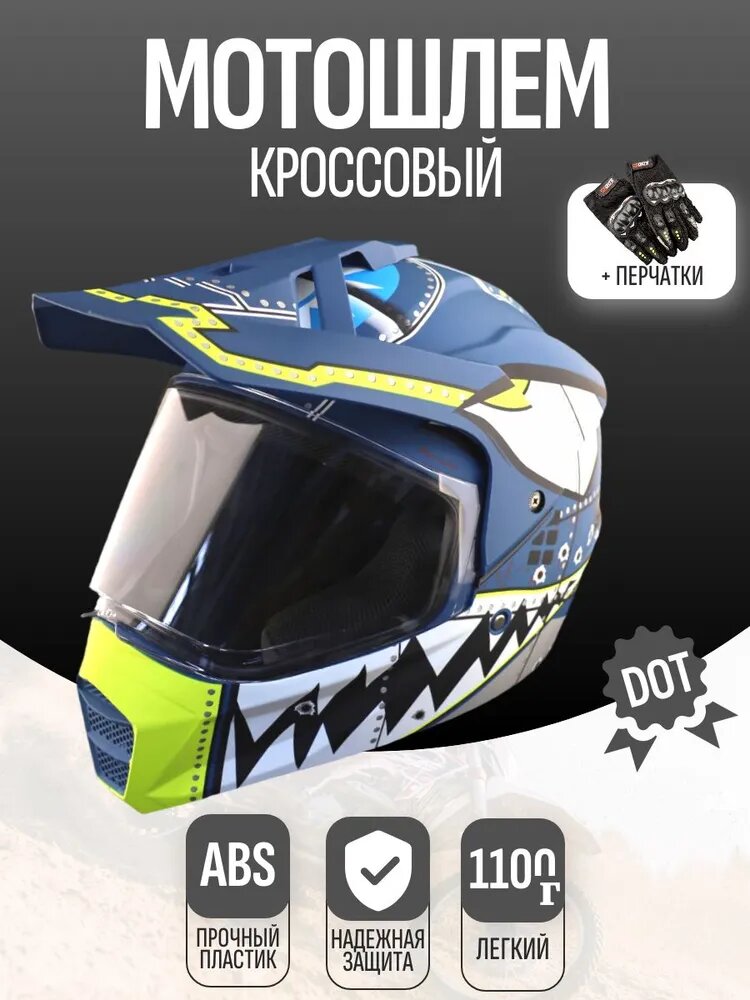 Купить Шлем кроссовый для мотоцикла, c визором прозрачный, + перчатки, синий, белый, размер S с доставкой по всей России. Шлем кроссовый для мотоцикла, c визором прозрачный, + перчатки, синий, белый, размер S: сравнение цен, характеристики, фото, актуальное наличие и цены.