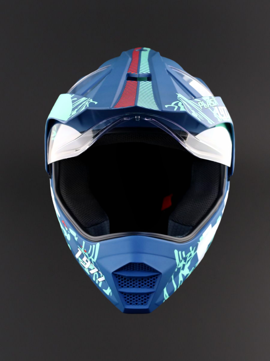 Купить Шлем кроссовый для мотоцикла, c визором прозрачный, + перчатки, синий, размер L с доставкой по всей России.