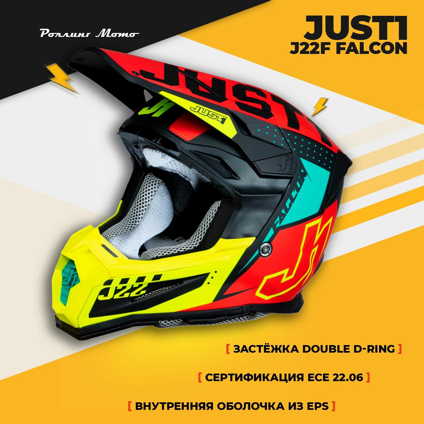 Шлем кроссовый JUST1 J22 F FALCON, Hi-Vis красный/Hi-Vis желтый/черный матовый, S: сравнение цен, характеристики, фото, актуальное наличие и цены.