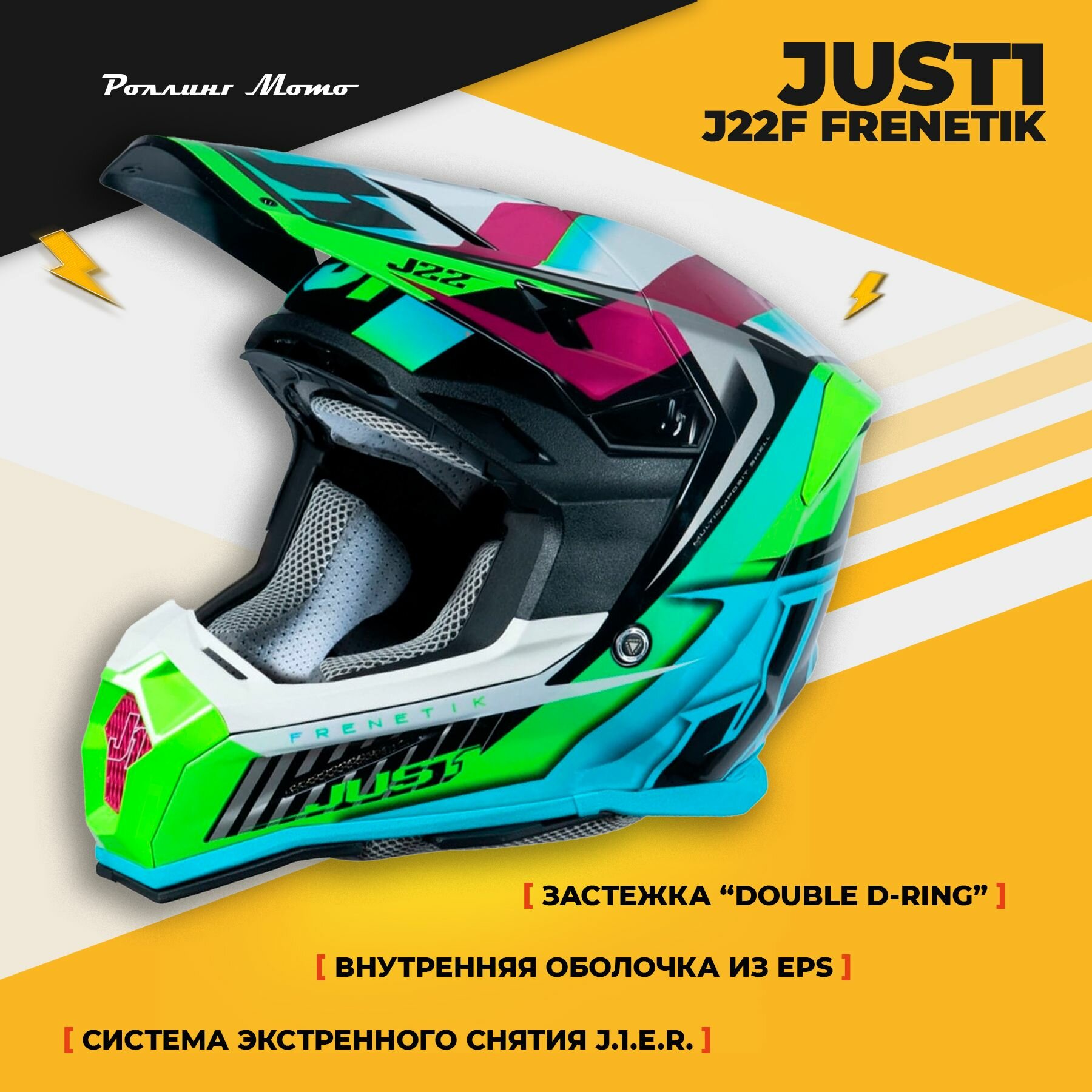 Шлем кроссовый JUST1 J22 F FRENETIK синий/Hi-Viz желтый/фиолетовый глянцевый, M: сравнение цен, характеристики, фото, актуальное наличие и цены.