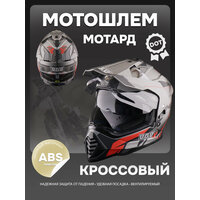 Купить Шлем кроссовый мотард для мотоцикла + солнцезащитные очки, красный, серый, черный, размер M, VGV с доставкой по всей России.
