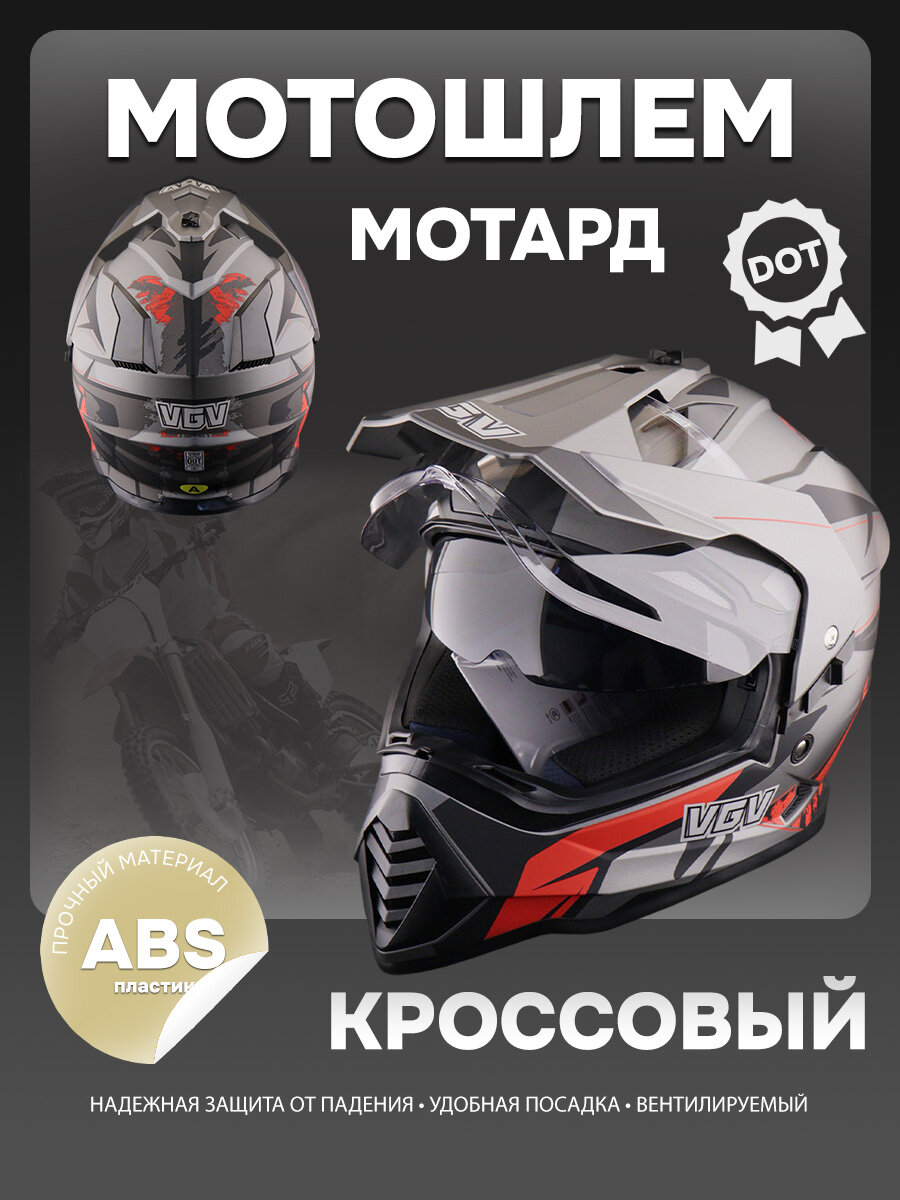 Шлем кроссовый мотард для мотоцикла + солнцезащитные очки, красный, серый, черный, размер M, VGV: сравнение цен, характеристики, фото, актуальное наличие и цены.