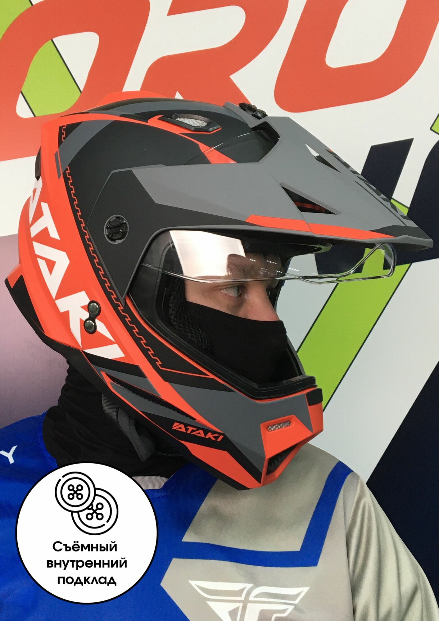Купить Шлем мотард для мотоцикла ATAKI JK802 Valor красный, серый матовый размер S с доставкой по всей России.