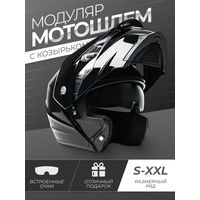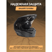 Шлем мотоциклетный Teller Motors, мотошлем модуляр J910 с козырьком, черный глянец, мужской, женский, детский, размер S