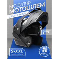 Купить Шлем мотоциклетный Teller Motors, мотошлем модуляр J910 с козырьком, черный глянец, мужской, женский, размер XL с доставкой по всей России.