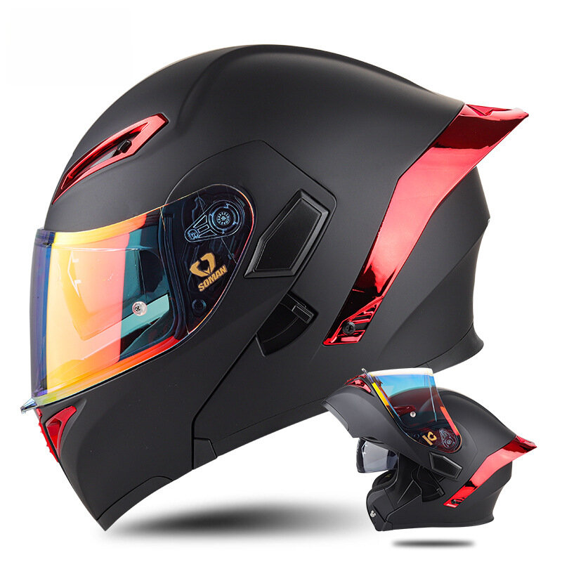 Шлем SOMAN SM955-S, матовый черный, гальваническое покрытие красного цвета, прозрачный REVO red: сравнение цен, характеристики, фото, актуальное наличие и цены.