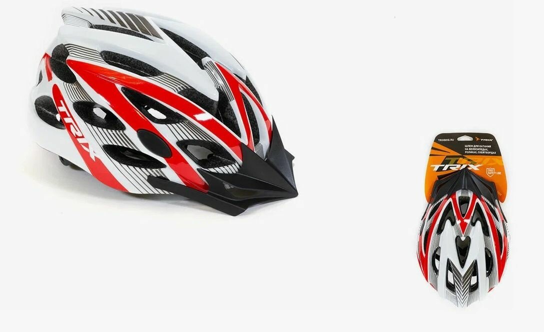 Шлем вело TRIX, кросс-кантри, 25 отверстий, регулировка обхвата, размер: L 59-60см, In Mold, красно-белый: сравнение цен, характеристики, фото, актуальное наличие и цены.