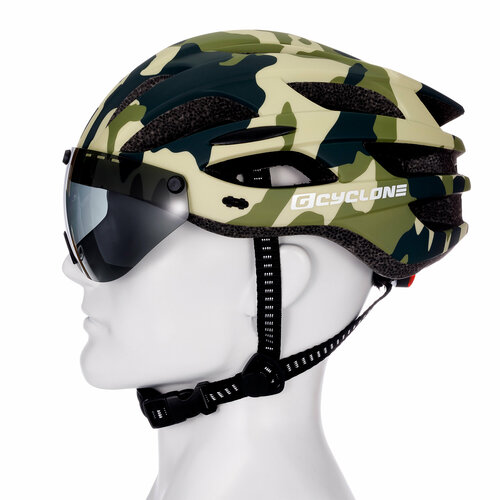 Купить Шлем велосипедный GEAR CYCLONE Basic, с магнитным визором (размер M/L 55-61 см, зеленый камуфляж) с доставкой по всей России. Шлем велосипедный GEAR CYCLONE Basic, с магнитным визором (размер M/L 55-61 см, зеленый камуфляж): сравнение цен, характеристики, фото, актуальное наличие и цены.