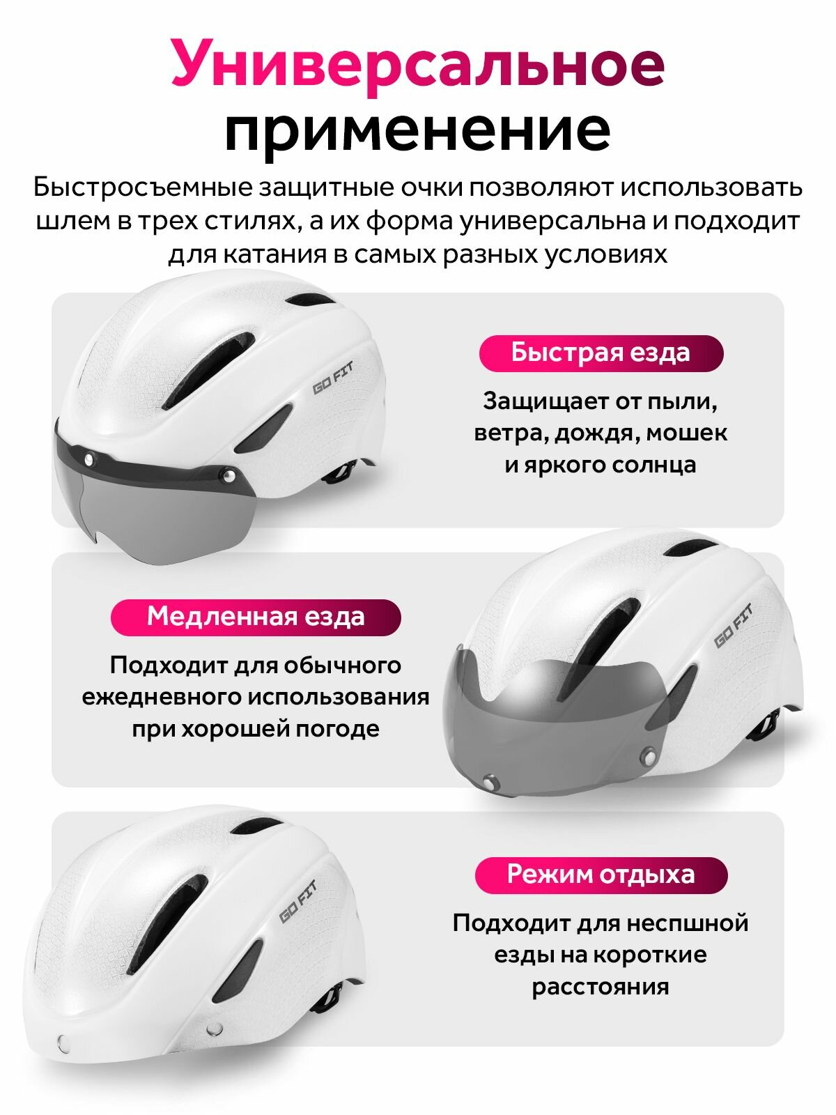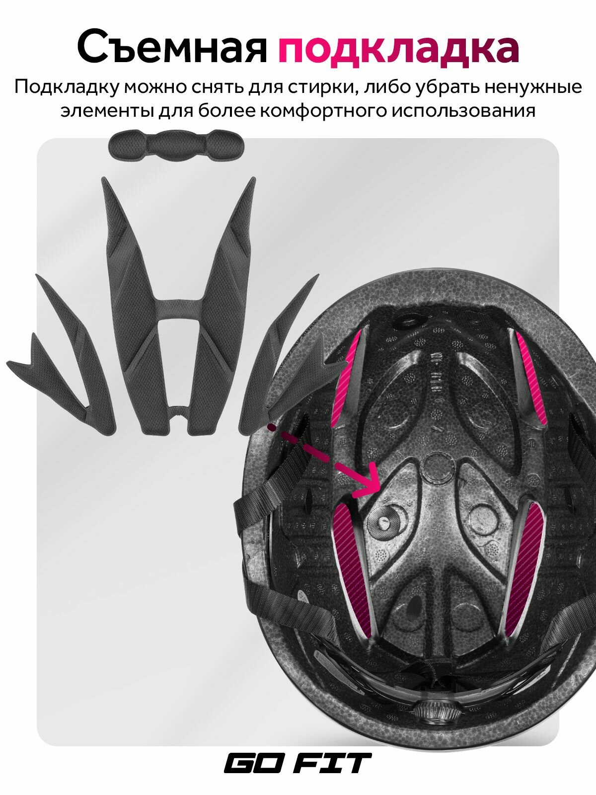 Используйте GO FIT Active для безопасных поездок на велосипеде, скутере или самокате и ощутите все преимущества качественного защитного средства. Ваша безопасность - превыше всего! Выбирая этот шлем, вы делаете шаг к активному образу жизни с максимальной защитой и комфортом.