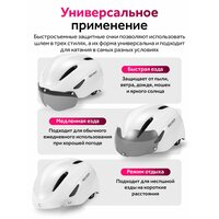 Шлем оснащен солнцезащитным визором, который эффективно защищает глаза от яркого солнечного света и позволяет сосредоточиться на дороге. Удобный козырек добавляет дополнительный уровень комфорта, делая поездки более приятными как в солнечные дни, так и в условиях слабого освещения. Прочный и легкий корпус шлема гарантирует надежную защиту при падениях и ударах, обеспечивая вам уверенность во время движения.