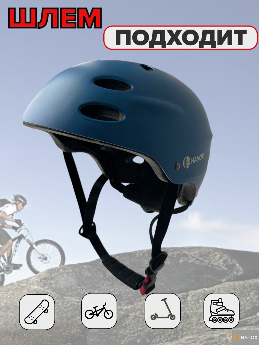 Купить Шлем защитный для катания на скейтбординге, роликах, самокатах, велосипедах, В-008 синий рМ с доставкой по всей России.