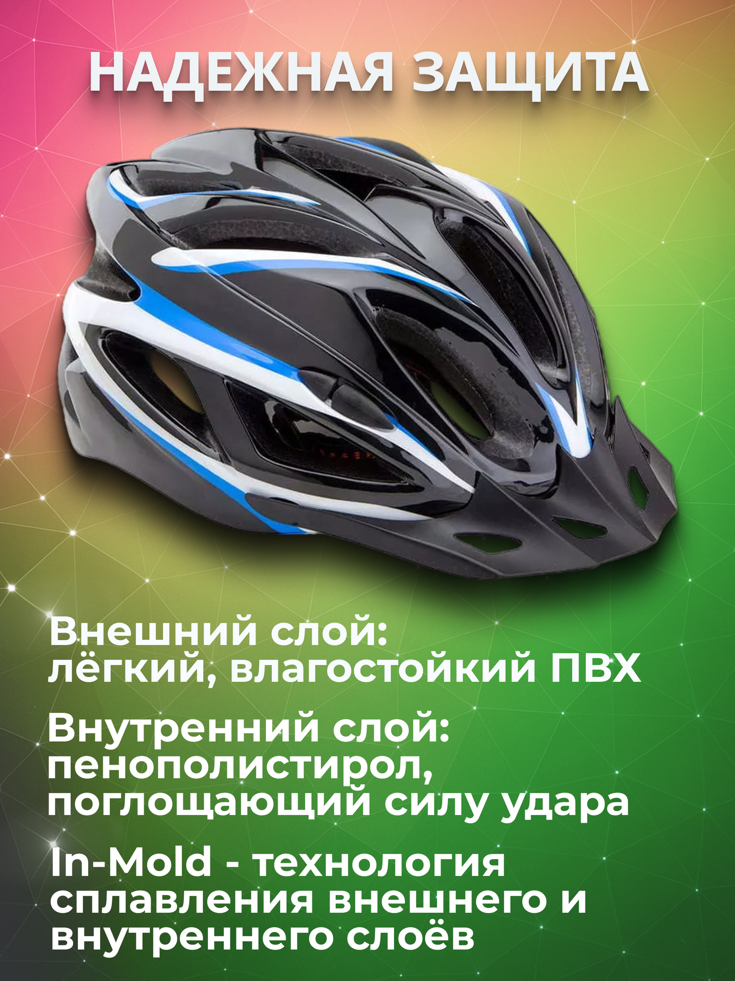Шлем защитный FSD-HL022 (in-mold) L (58-60 см) чёрный с синими полосами/600129: сравнение цен, характеристики, фото, актуальное наличие и цены.