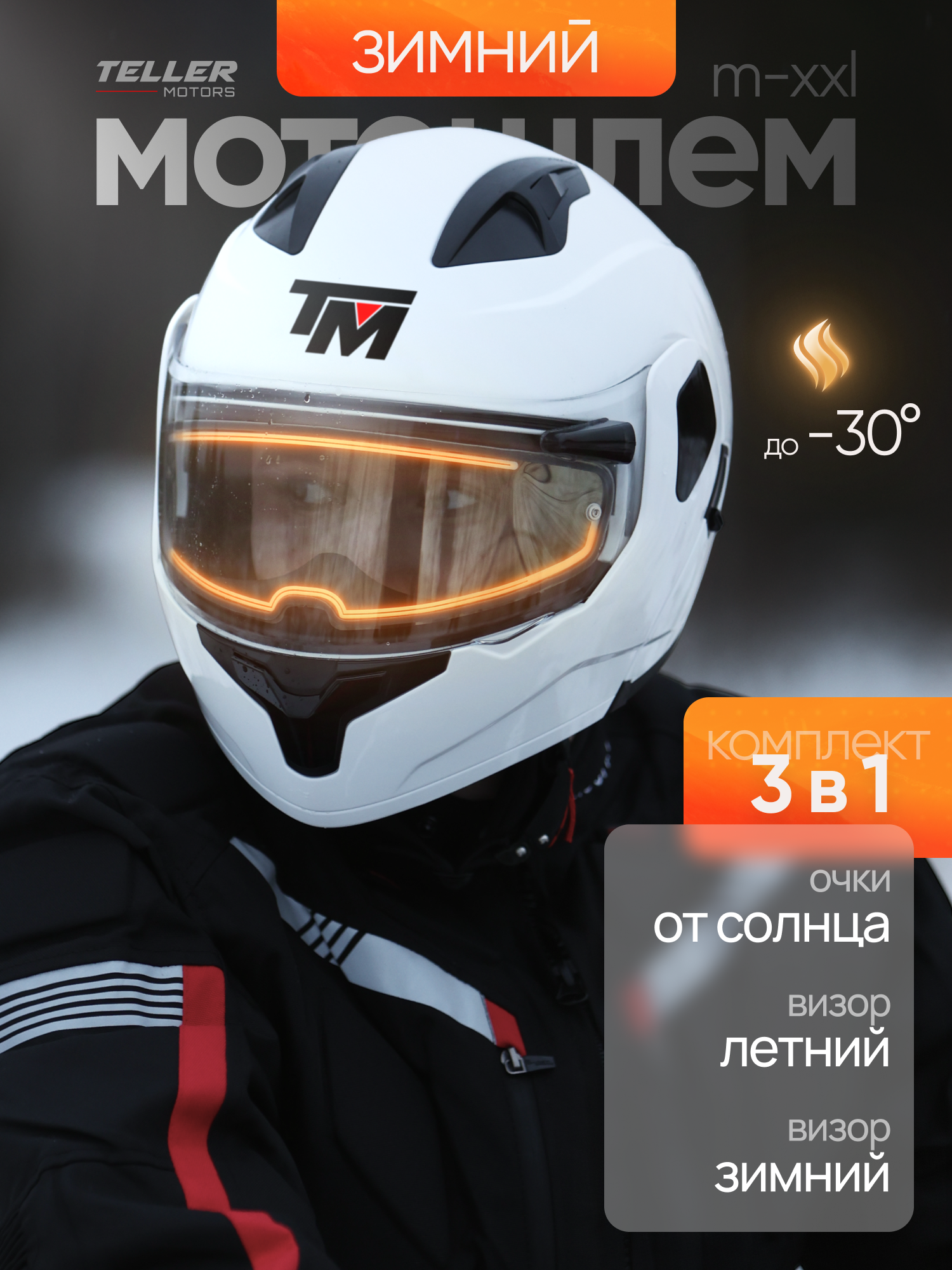 Мотошлем зимний с подогревом визора, снегоходный с очками белый глянцевый, размер XXL: сравнение цен, характеристики, фото, актуальное наличие и цены.