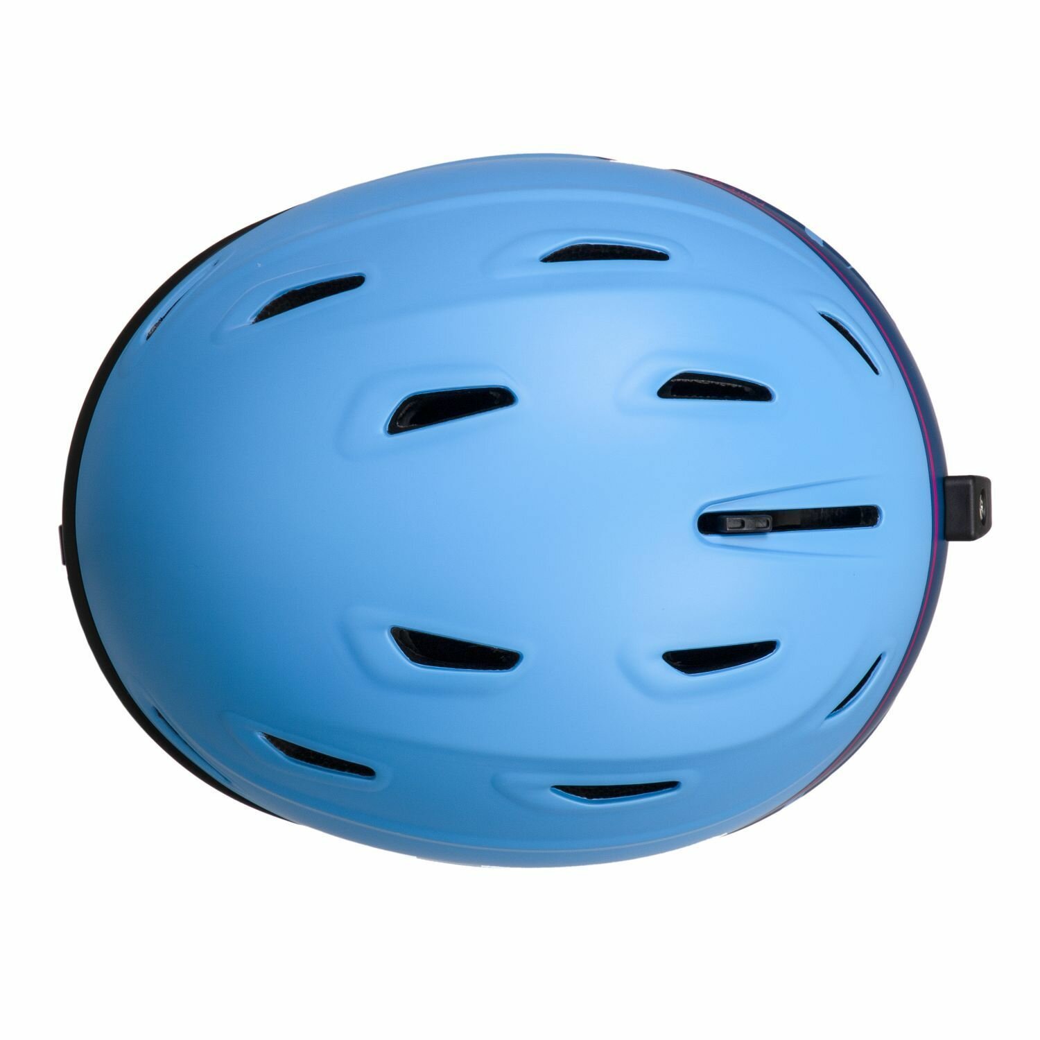 Дизайн шлема выполнен в стильном синем цвете с голубыми акцентами, что делает его ярким и заметным на склоне. Это не только функциональный аксессуар, но и стильный элемент вашего зимнего образа.