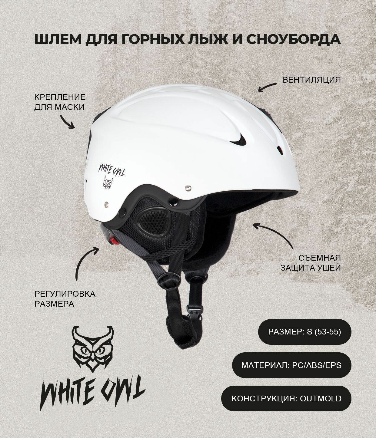 Шлем зимний White Owl MS-86, S (53-55), белый: сравнение цен, характеристики, фото, актуальное наличие и цены.