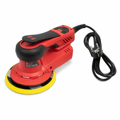 DLT KS-01-150-50 это профессиональная орбитально-эксцентриковая шлифмашинка. Размер подошвы: 150мм. Ход эксцентрика: 5,0мм. Количество скоростей: 7. Вес: 1,1 кг. Применяется для обработки, полировки и шлифовки поверхностей различных материалов. Подходит для строительных малярных работ, деревообработки, авторемонта и металлообработки. Эксцентриковая шлифмашинка DLT KS-01-150-50 очень легкая, компактная и удобная в работе. Оснащается бесщеточным двигателем, который отличается долговечностью, уменьшенной вибрацией, а так же пониженным энергопотреблением. Конструкция двигателя обеспечивает максимальный крутящий момент с высокой мощностью 350Вт. Шлифмашинка имеет электронную индикацию скорости вращения и кнопку включения/выключения питания. Наличие системы электронного контроля оборотов позволит значительно повысить качество выполняемых работ. Низкий уровень вибрации по достоинству оценят профессионалы, работающие часто и долго шлифовальным оборудованием. Тщательно продуманная и эффективная система удаления пыли для комфортной работы и экономии абразивного материала. Плавный запуск, легкий вес, удобный корпус, продуманное расположение кнопки запуска (под ладонь), все это делает работу максимально легкой. Также, отличительной особенностью этого устройства будет минимальное количество изнашивающихся деталей в конструкции, эта особенность позволила продлить срок службы и уменьшить расходы на замену расходных материалов.