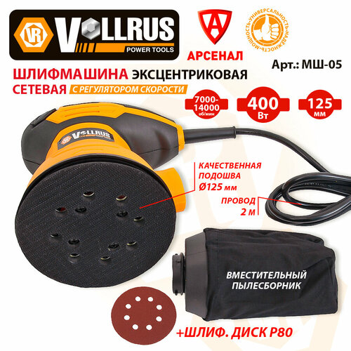 Купить Шлифмашина электрическая эксцентриковая 400Вт; 125мм; Vollrus, МШ-05 с доставкой по всей России. Шлифмашина электрическая эксцентриковая 400Вт; 125мм; Vollrus, МШ-05: сравнение цен, характеристики, фото, актуальное наличие и цены.