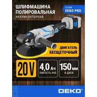 Шлифмашина полировальная аккумуляторная бесщеточная DEKO KDCP20 PRO, 150 мм, 20В, 1×4.0Ач