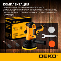 Купить Шлифмашина полировальная сетевая DEKO DKP1000, 125 мм, 1000 Вт + набор аксессуаров 5 шт с доставкой по всей России.
