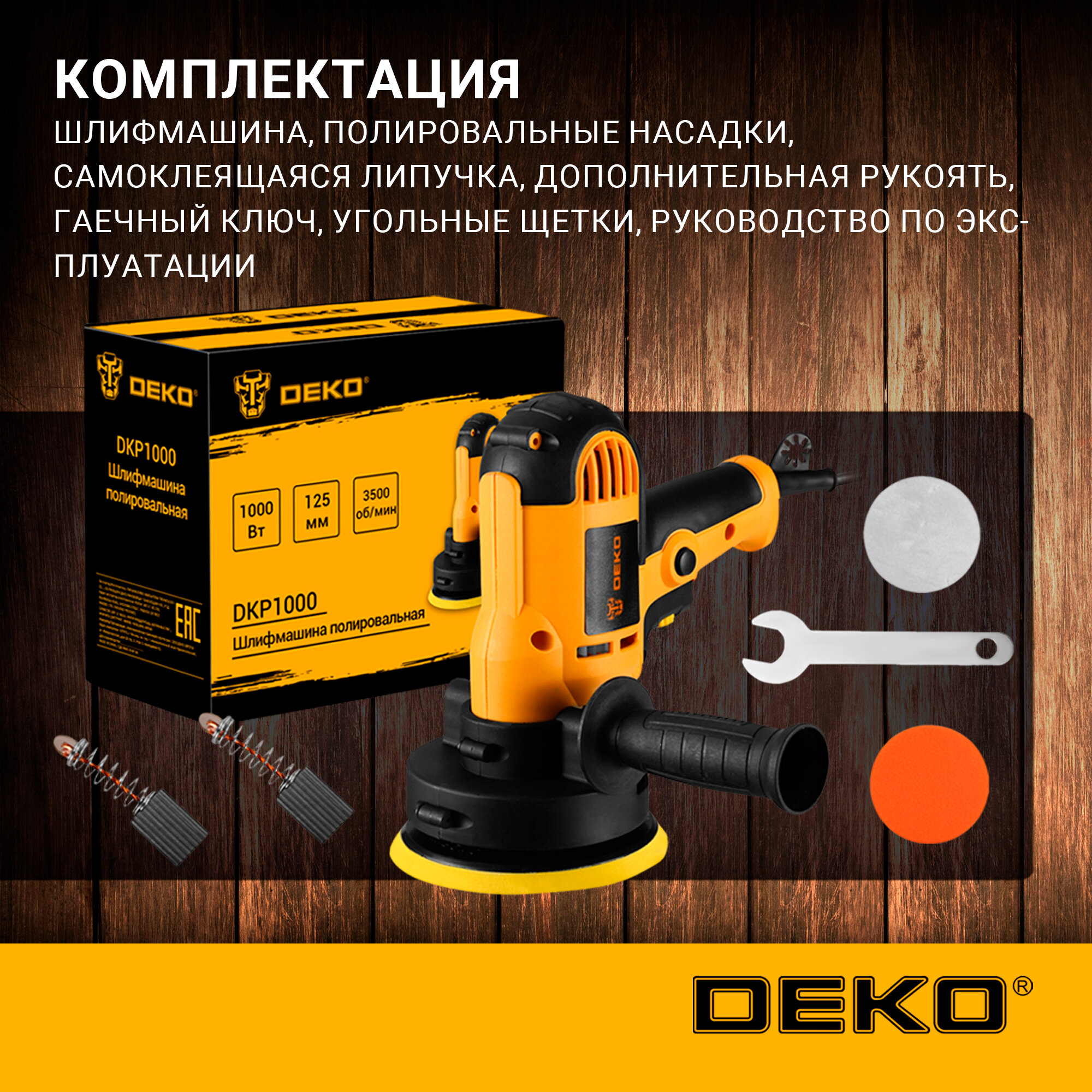 Шлифмашина полировальная сетевая DEKO DKP1000, 125 мм, 1000 Вт + набор аксессуаров 5 шт: сравнение цен, характеристики, фото, актуальное наличие и цены.