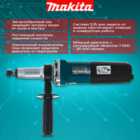 Высокомоментная прямая шлифовальная машина с максимальным размером патрона 8 мм. Специальная система привода с муфтой Super-Joint-System от Makita предотвращает рывки инструмента при работе и пуске. Лабиринтное уплотнение защищает мотор и подшипники от загрязнения. Идеальна для обработки внутренних поверхностей.