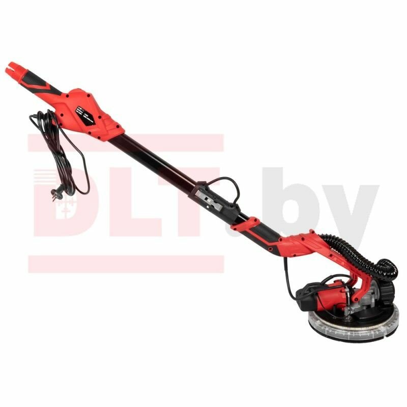 DLT R7236 – ротационная телескопическая шлифовальная машинка с автономной системой пылеудаления и фиксированным вакуумом (по силе средний), оснащенная LED подсветкой рабочей зоны. Предназначена для шлифовки стен и потолков (в некоторых случаев и полов). К примеру, для выравнивания поверхности после нанесения шпаклёвки или цементного раствора, снятия устаревшего слоя краски, шпаклёвки, лака и т. д, чистки полов от осаждений, образующихся при выполнении ремонтных работ; удаления со стен оставшихся клочков обоев и т. д.