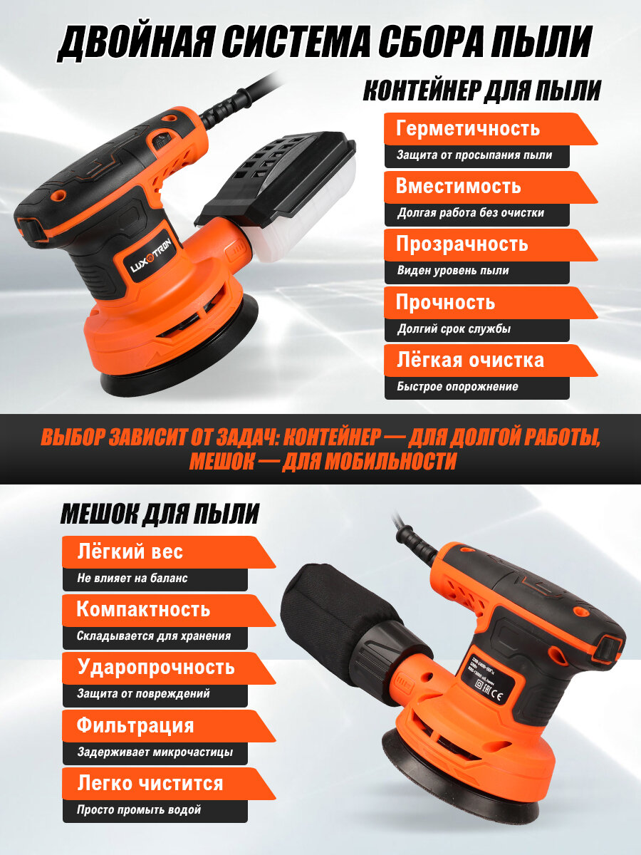 Шлифовальная машина эксцентриковая Luxotron, 350Вт, 8000 — 13000 об/мин, 16 штук шлифовальных бумаг, 125 мм: сравнение цен, характеристики, фото, актуальное наличие и цены.