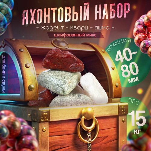 Камни для бани и сауны "Шлифованный микс" фракции (40-80мм) состоит из трех видов камней: красная яшма, отборный белый кварц и жадеит Хакасия. Все камни относятся к элитным и обладают высокими банными качествами, а также великолепными полезными свойствами. Расфасован в мягкую упаковку по 15 кг.
