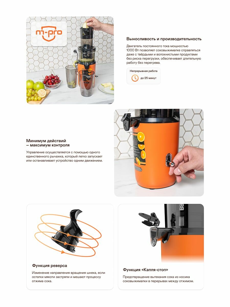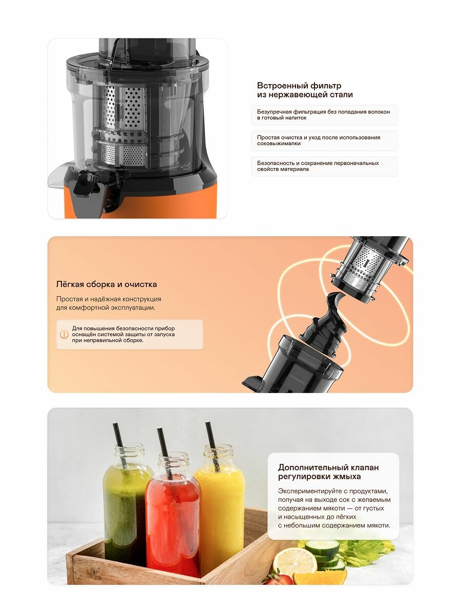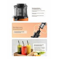 | Подробная комплектация | 1. Соковыжималка - 1шт 2. Кувшин для сока - 1шт 3. Контейнер для жмыха - 1шт 4. Толкатель - 1шт 5. Щетка для очистки - 1шт 6. Руководство пользователя - 1шт 7. Краткая инструкция пользователя - 1шт 8. Гарантийный талон - 1шт |