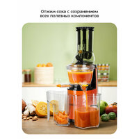 автоматический выброс мякоти, защита от перегрузки, защита от случайного включения, индикатор уровня сока, плавный запуск двигателя, реверс, система «капля-стоп», система прямой подачи сока