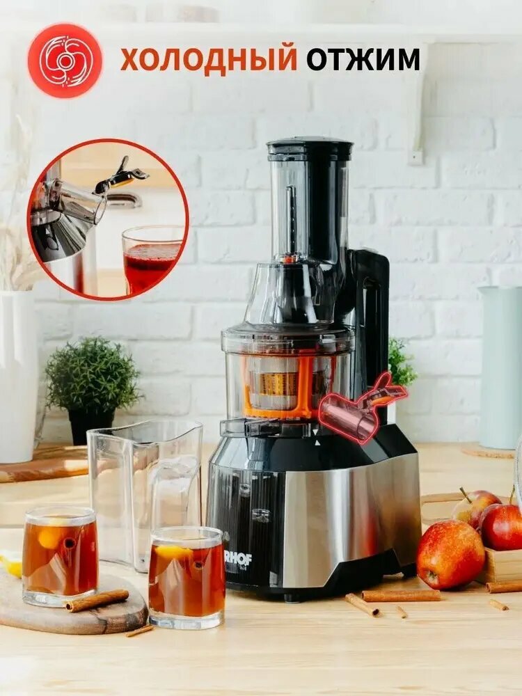OBERHOF Drucken Q-12 имеет высокую мощность, поэтому отжимает не только мягкие фрукты и овощи, но и твердые корнеплоды и даже орехи. Корпус устройства выполнен из нержавеющей стали и пластика, он прочный и удобный в уходе. Включается устройство одним нажатием кнопки. Если соковыжималка перегреется, она автоматически отключится. Кроме того, прибор не включится, если его элементы неправильно зафиксированы. Ищите нас по запросам: Бытовая техника для кухни. Мощная соковыжималка для дома. Соковыжималка для цитрусовых, для овощей и фруктов/ для граната, лимона, яблок, моркови. Соковыжималка для твердых овощей. Соковыжималка прекрасно выполняет функцию приготовления напитков и изготовление соков. Кроме того, эта соковыжималка позволяет изготовить сок из листовых овощей (шпинат, базилик, петрушка, салат). Получается прекрасный сок холодного отжима, фруктовый фреш/ отжим сока, гранатового сока, сока яблок. Натуральный сок из соковыжималки в домашних условиях.
