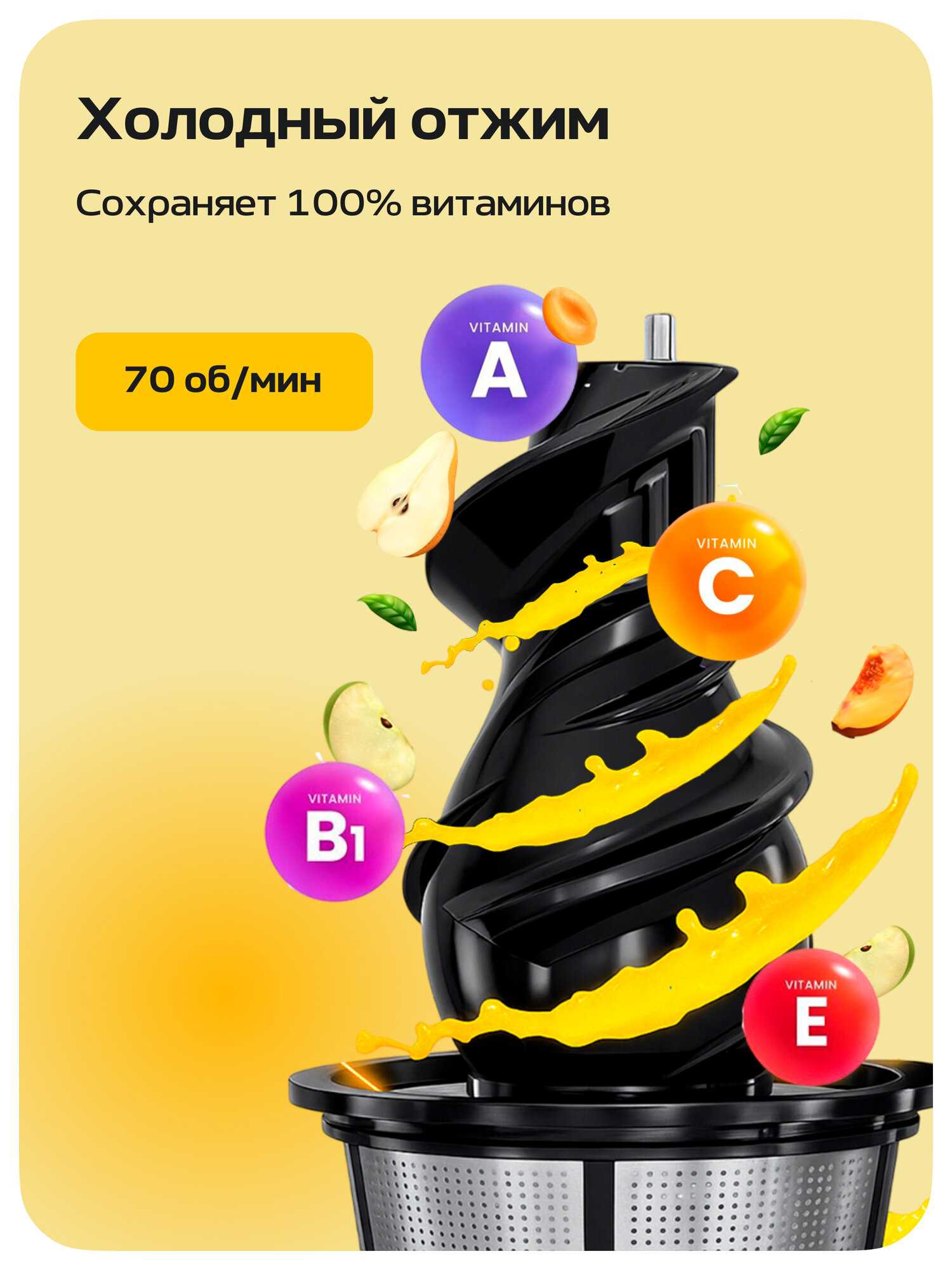 | Особенности | защита от перегрузки, защита от случайного включения, реверс, система «капля-стоп», система прямой подачи сока |