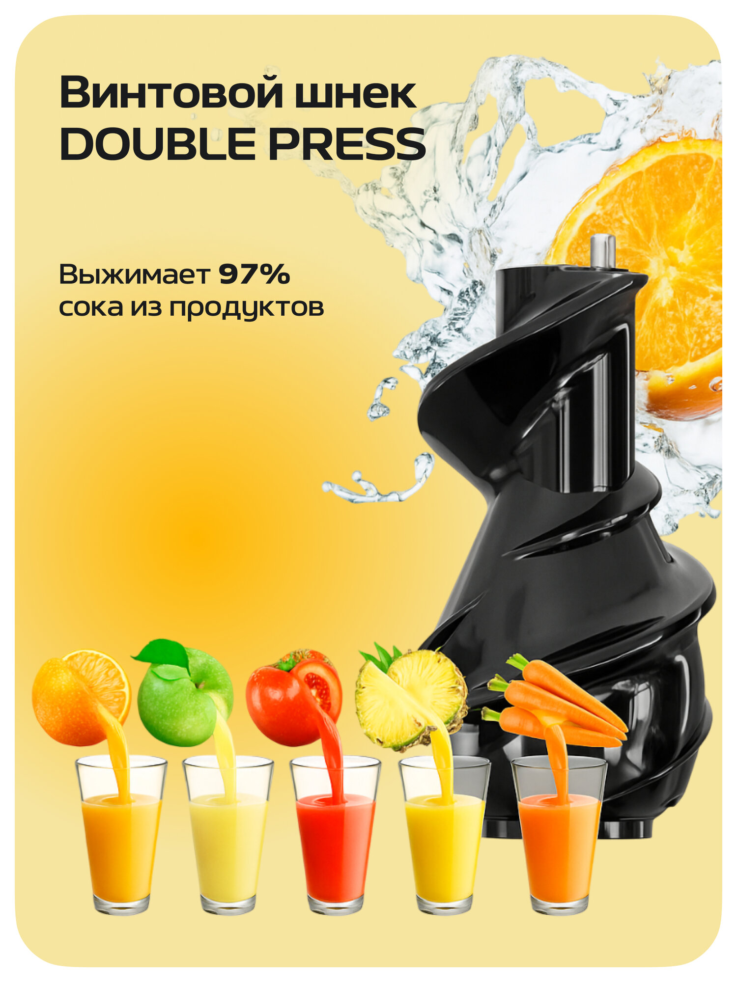 | Дополнительная информация | 2 отверстия в горловина, шнек Double Press |