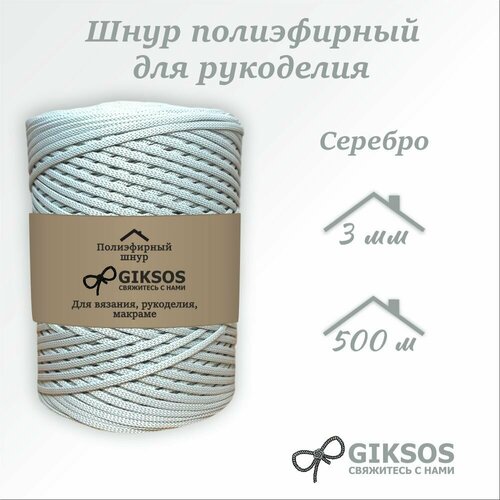 Шнур 3 мм полиэфирный , 500м, цвет серебро, для вязания