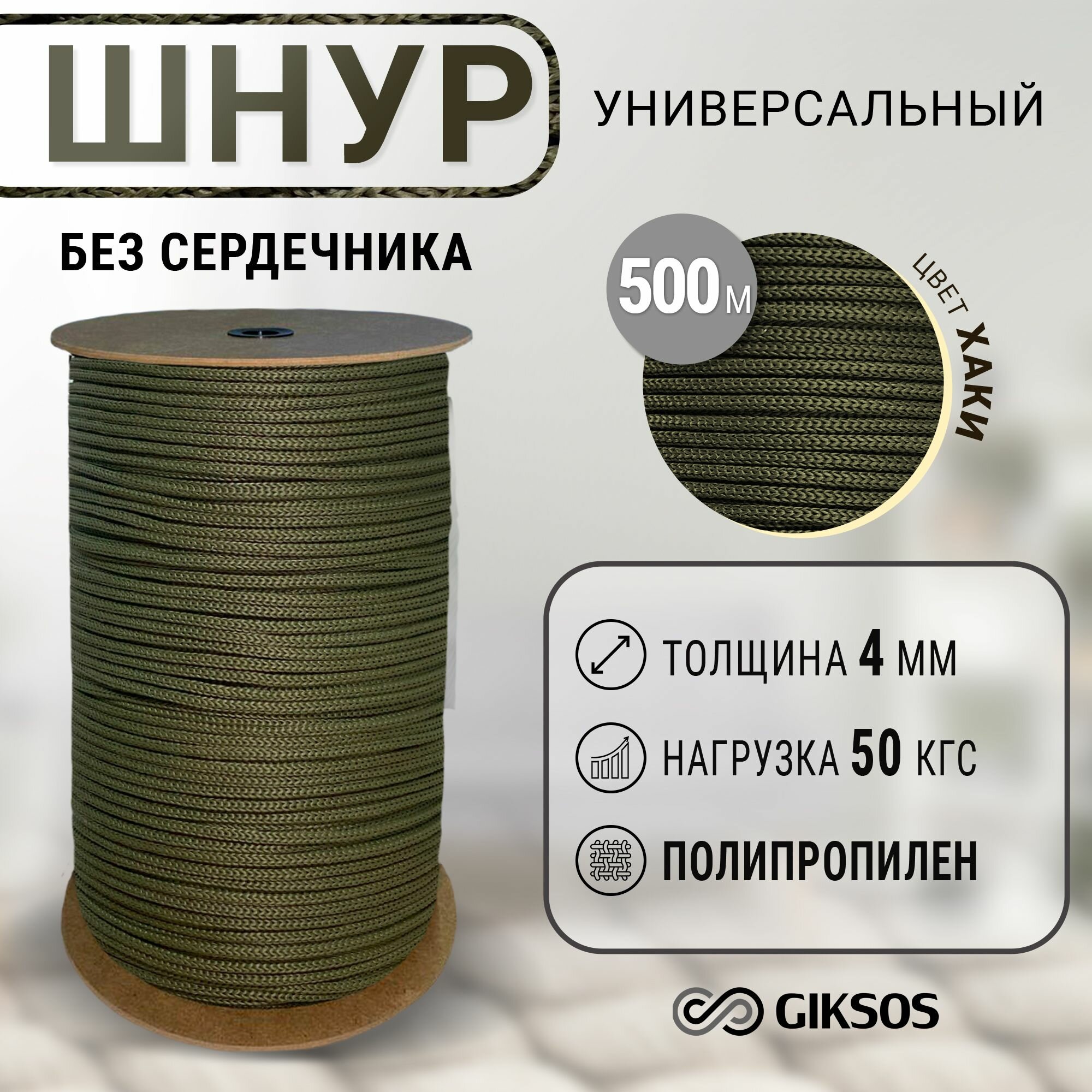 Купить Шнур 4мм, 500 м, бельевая, хозяйственная, универсальная, полипропиленовая, цвет хаки с доставкой по всей России. Шнур 4мм, 500 м, бельевая, хозяйственная, универсальная, полипропиленовая, цвет хаки: сравнение цен, характеристики, фото, актуальное наличие и цены.