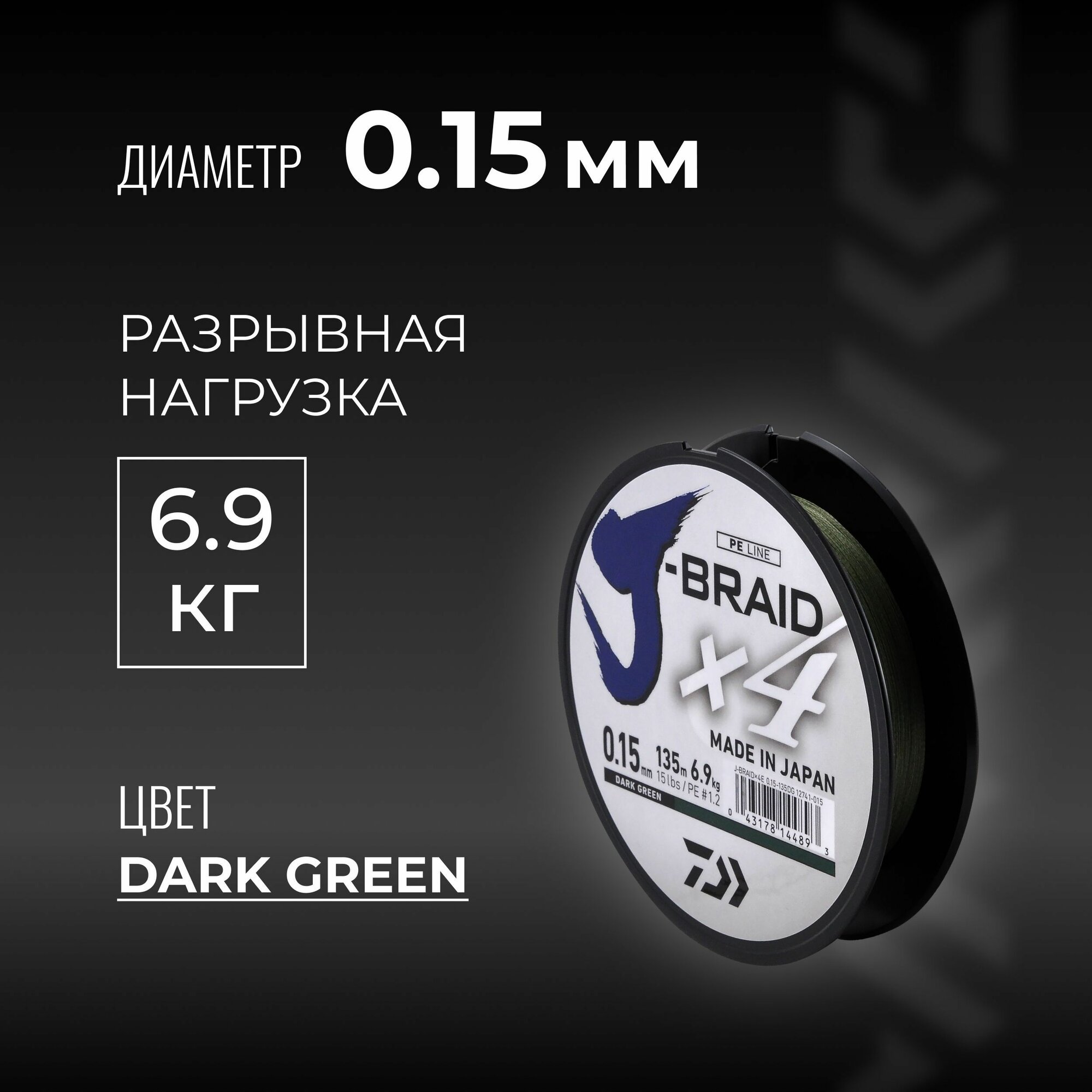 Купить Шнур DAIWA J-Braid x4 135м Dark Green 0,15мм 6,9кг четырехжильный с доставкой по всей России. Шнур DAIWA J-Braid x4 135м Dark Green 0,15мм 6,9кг четырехжильный: сравнение цен, характеристики, фото, актуальное наличие и цены.