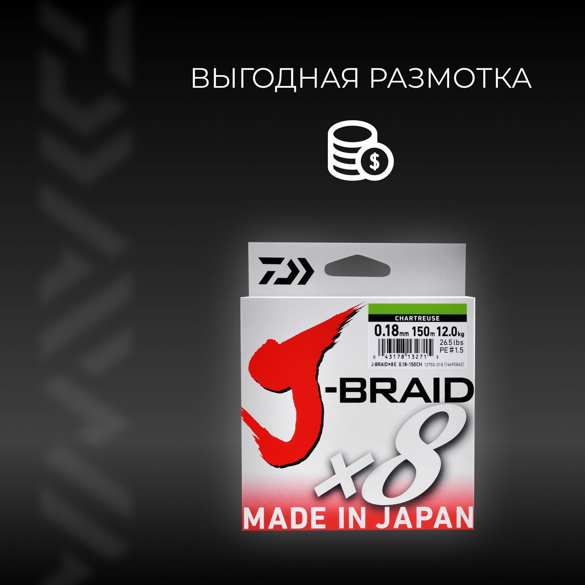 Шнур Daiwa J-Braid Х8 Chartreuse – это высококлассный плетеный шнур отменного японского качества от фирмы Daiwa, который состоит из восьми волокон высококачественного полиэтилена, имеет очень плотное плетение и сечение, максимально приближенное к круглому. Благодаря этому плетенка обладает очень скользкой и гладкой поверхностью. Плетеные шнуры J-Braid X8 имеют практически нулевую растяжимость, что способствует идеальной игре приманки и эффективной подсечке, превосходной связи с приманкой, а также более дальнему и точному забросу. Шнур также обладает хорошей устойчивостью к истиранию, благодаря чему минимально подвержен повреждению о различные подводные препятствия и может применяться для ловли в затрудненных условиях. Яркий цвет Daiwa J-Braid Х8 Chartreuse хорошо заметен даже при плохом освещении и позволяет легко контролировать приманку.