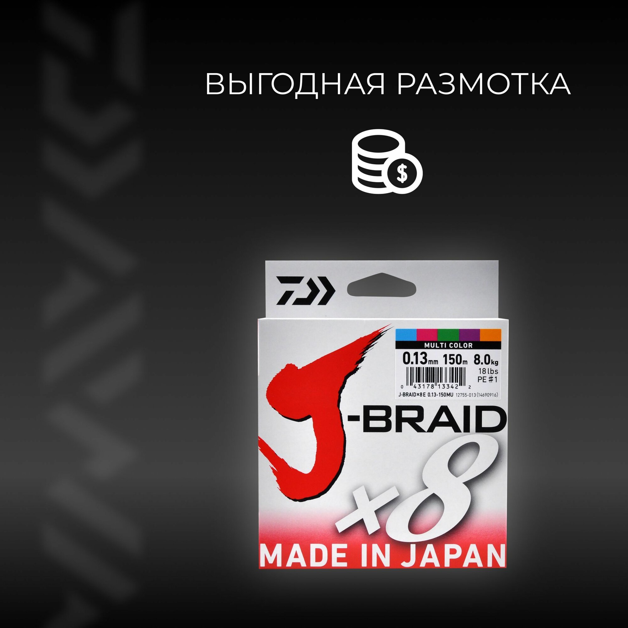Шнур DAIWA J-Braid x8 150м Multicolor 0,13мм 8кг восьмижильный: сравнение цен, характеристики, фото, актуальное наличие и цены.