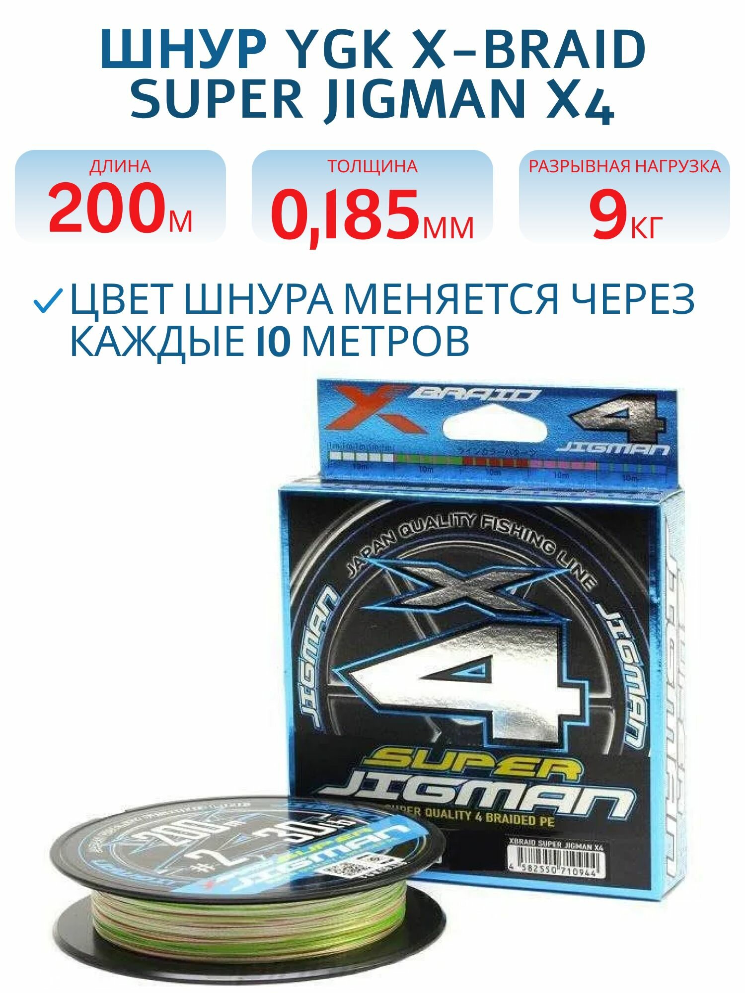 Шнур плетеный для рыбалки YGK X-Braid Super Jigman X4 200 м #1.2 диаметр 0.185 мм разрывная нагрузка 20lb 9.0 кг разноцветный: сравнение цен, характеристики, фото, актуальное наличие и цены.