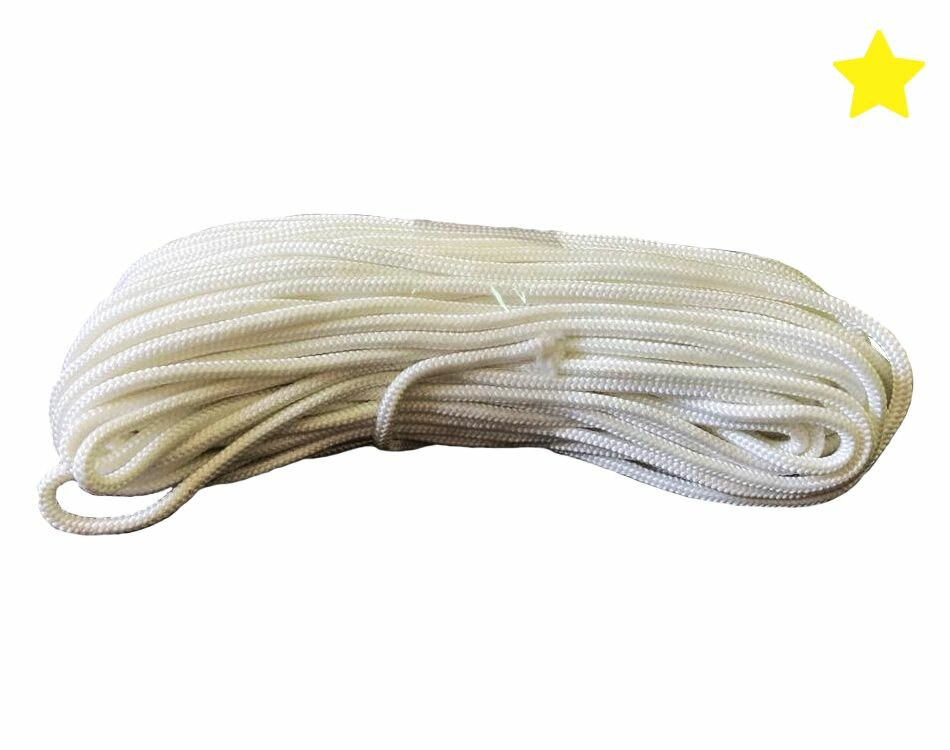 Шнур полиамидный (капроновый) ПА плетеный 16-ти прядный с сердечником, диаметр шнура 5 мм, разрывная нагрузка 550 кгс. Моток 50 м.