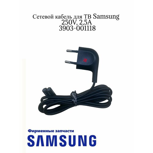 Шнур сетевой для ТВ Samsung 3903-001118 250V, 2.5A, 2 pin, 1,5м, Оригинал: сравнение цен, характеристики, фото, актуальное наличие и цены.