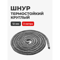Шнур уплотнительный термостойкий круглый, 12 мм, 3 метра служит для герметичного уплотнения дверцы каминов, печей, а также предназначен для герметизации топочных дверок и стекол к ним.