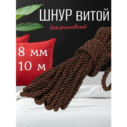 Витой круглый шнур диаметром 8мм, в упаковке 10 метров, полиэстер 100%, для одежды и бытовых нужд. Материал шнура позволяет найти ему множество применений. Отделка мягкой мебели, чехлов, декорирование домашнего текстиля, штор. Используется для вязания сумок, плетения корзинок, кашпо, салфеток, ковриков, декоративных изделий. Широко применяется для вязания ковров в детскую комнату, поскольку не имеет запаха и абсолютно безопасный. Подойдет для использования при пошиве спортивной одежды, как шнур в капюшоне и на брюках. Очень мягкий, имеет красивую нежную структуру, легко принимает нужную форму. Тесьма порадует вас отличным качеством, разнообразием расцветок и простотой использования. Качественный материал, высокая устойчивость к стирке и деформации без изменения своих качеств, длительность в применении.