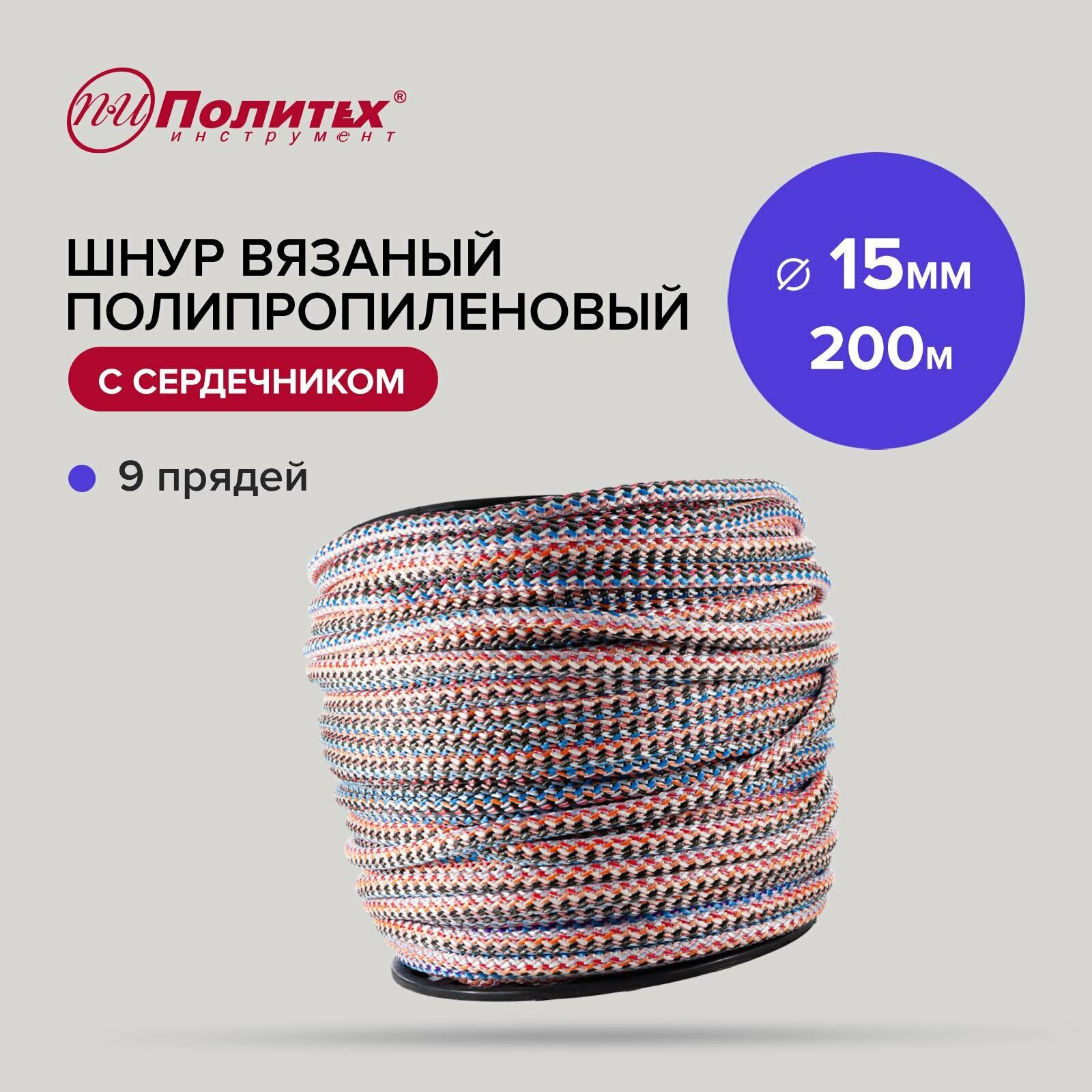 Шнур вязаный полипропиленовый с сердечником 15 мм, 200 м Политех Инструмент: сравнение цен, характеристики, фото, актуальное наличие и цены.
