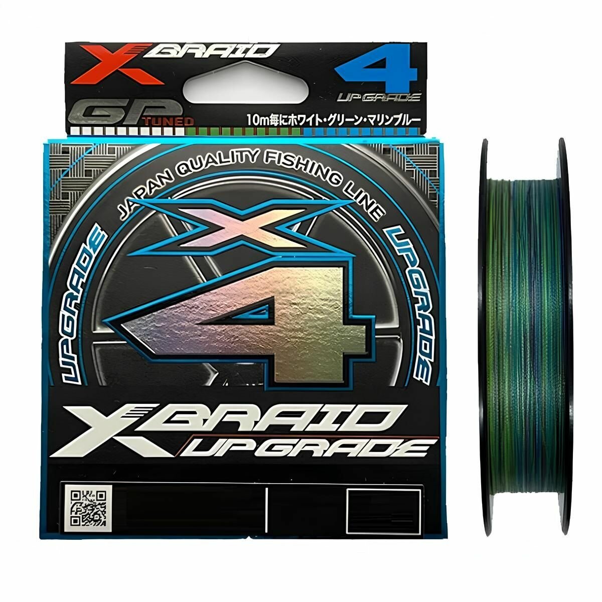 Японская плетёнка Юджикей Иксбрейд Апгрейд 3 Color X4 раньше имела название G-Soul EGI Metal и теперь получила новый цвет и более качественную пропитку. Много лет этот шнур славился своими выдающимися износоустойчивыми характеристиками и максимально возможной плотностью плетения. Благодаря этим характеристикам его можно рекомендовать для рыбалки в самых сложных условиях и когда требуется дальний заброс. Выпускается в диаметрах от #0,4 до #1. Четырехжильный шнур X-Braid Upgrade 3 Color X4 получил хитрую трёхцветную маркировку: на каждые 10 метров шнура черно-красно-черная метка и через каждый метр красная-зеленая-красная метка.