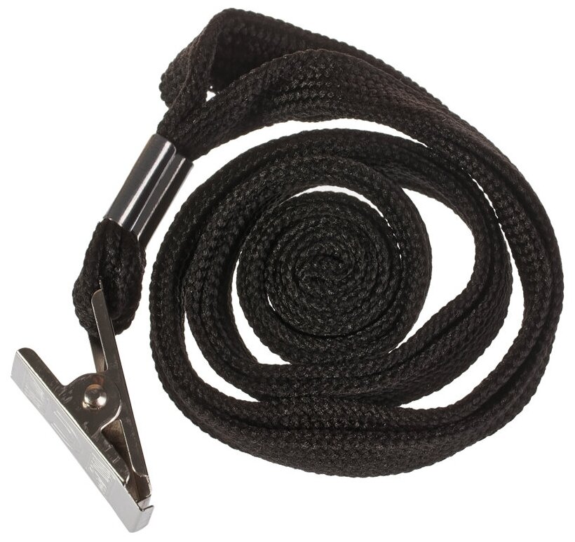 Купить Комплект 50 шт, Шнурок для бейджей OfficeSpace, 45см, металлический клип, черный с доставкой по всей России.