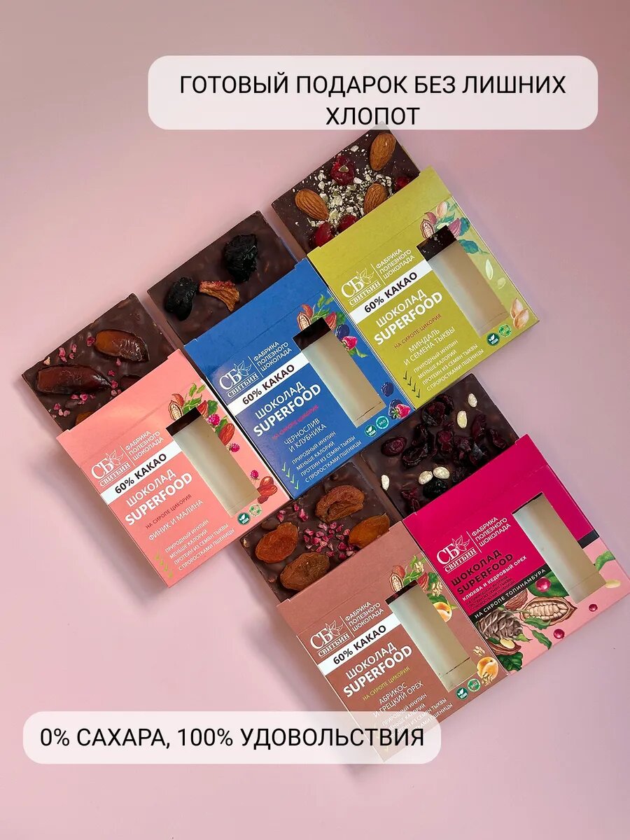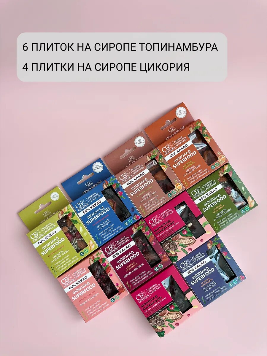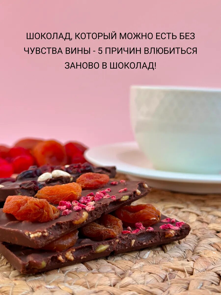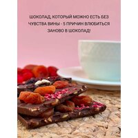 | Состав | шоколад (какао тертое, какао масло нерафинированное, сироп топинамбура), семена тыквы, ягоды и фрукты сублимированные, сухой порошек пророщенной пшеницы (витграсс), ваниль натуральная, соль гималайская. |