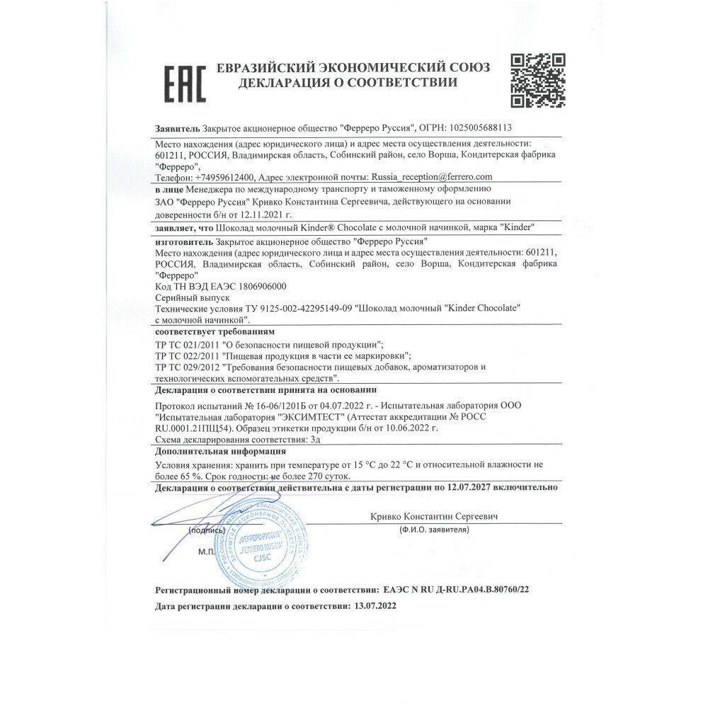 Выбирая шоколад Kinder с молочной начинкой, вы получаете не только вкусное и качественное лакомство, но и заботу о своем здоровье и здоровье своих близких.