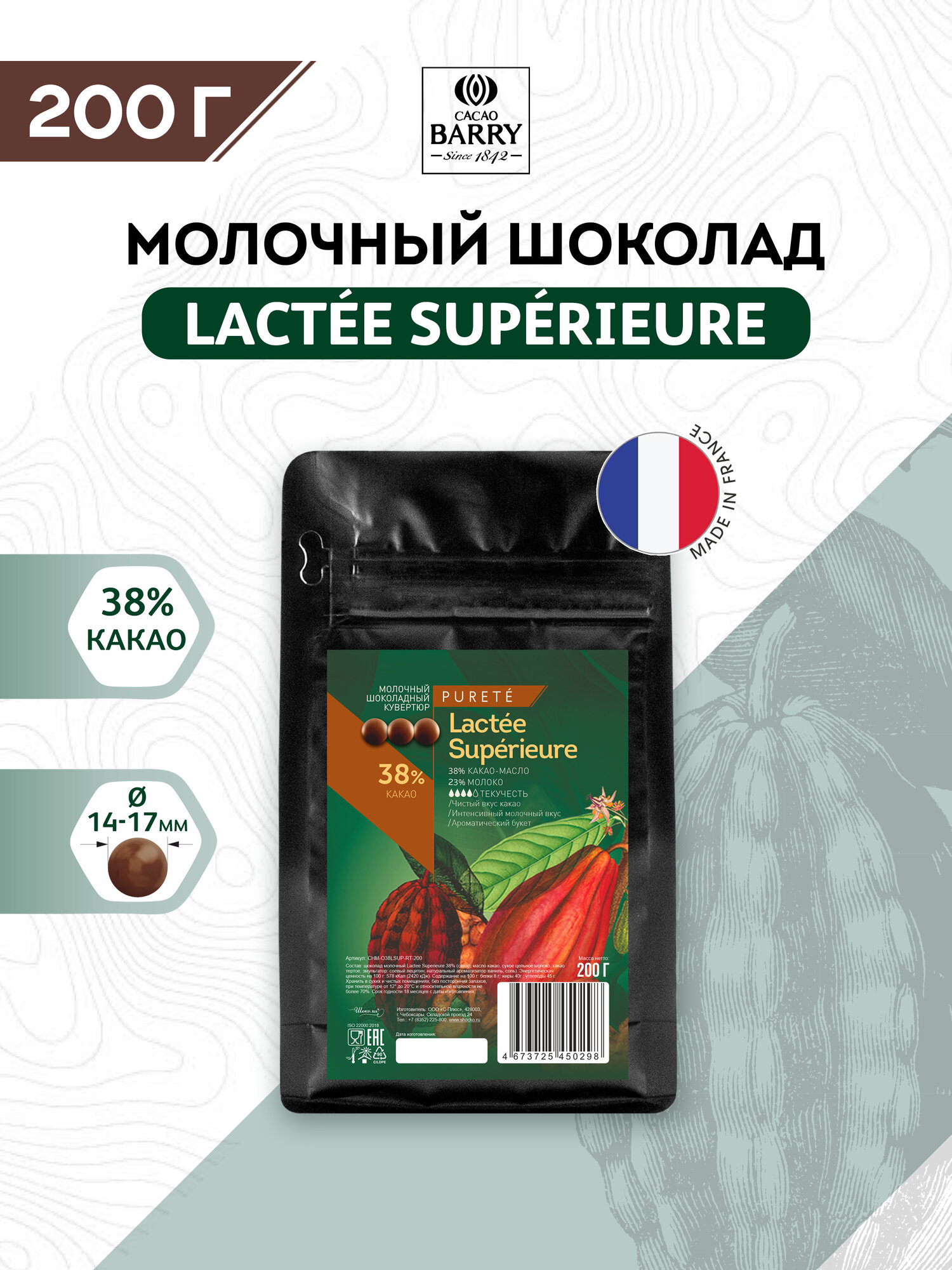 Шоколад молочный Lactee Superieure от Cacao Barry - это изысканный десерт, который обязательно придется по вкусу всем любителям сладкого. Этот шоколад обладает неповторимым вкусом и ароматом благодаря высокому содержанию какао и молока. Он идеально подходит для создания различных кондитерских изделий, таких как пирожные, торты и конфеты. Молочный шоколад Lactee Superieure также прекрасно сочетается с другими продуктами, такими как орехи, фрукты и ягоды. Его можно использовать для приготовления глазури, муссов и соусов. Кроме того, он отлично подойдет для декорирования десертов и создания шоколадных фигурок. Этот шоколад производится из высококачественных натуральных ингредиентов, поэтому он не только вкусный, но и полезный для здоровья. Молочный шоколад Lactee Superieure станет отличным выбором для тех, кто ищет вкусный и полезный десерт. Продукт упакован в удобный пакет с замком зип-лок весом 200 грамм. Фасовка осуществляется на современном оборудовании нашего производства с соблюдением всех норм, требований и стандартов пищевой безопасности, в том числе санитарных и гигиенических.